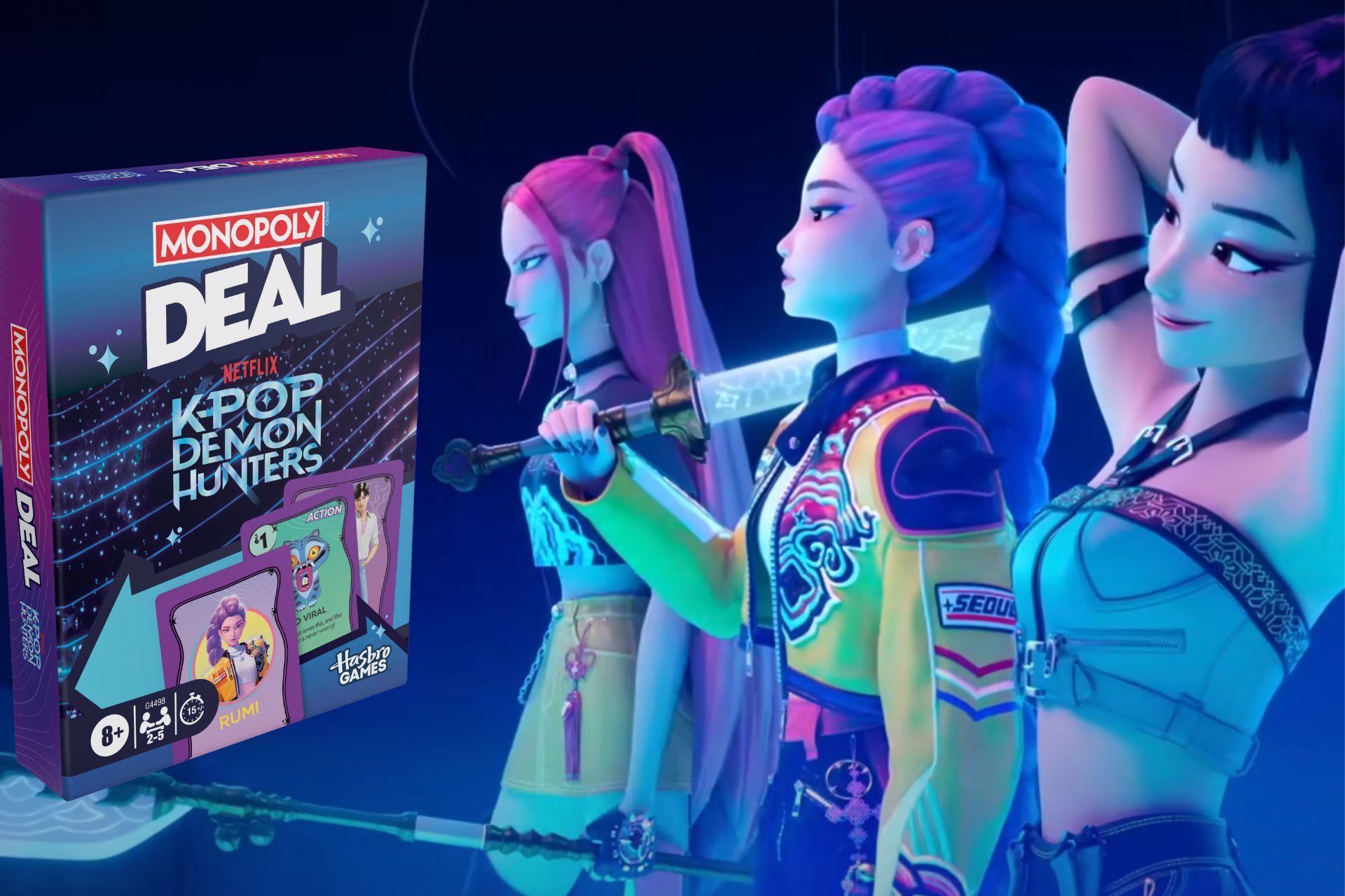 Sementara itu, Hasbro akan meluncurkan board game bertema “K-Pop Demon Hunters” berjudul “Monopoly Deal: KPop Demon Hunters”. Mereka juga berencana merilis boneka special edition, mainan, dan produk role-play.