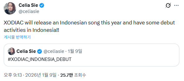 Lewat akun pribadinya tersebut, sang CEO mengungkapkan bahwa pada tahun ini XODIAC akan merilis lagu Indonesia dan melakukan aktivitas debut di Indonesia.