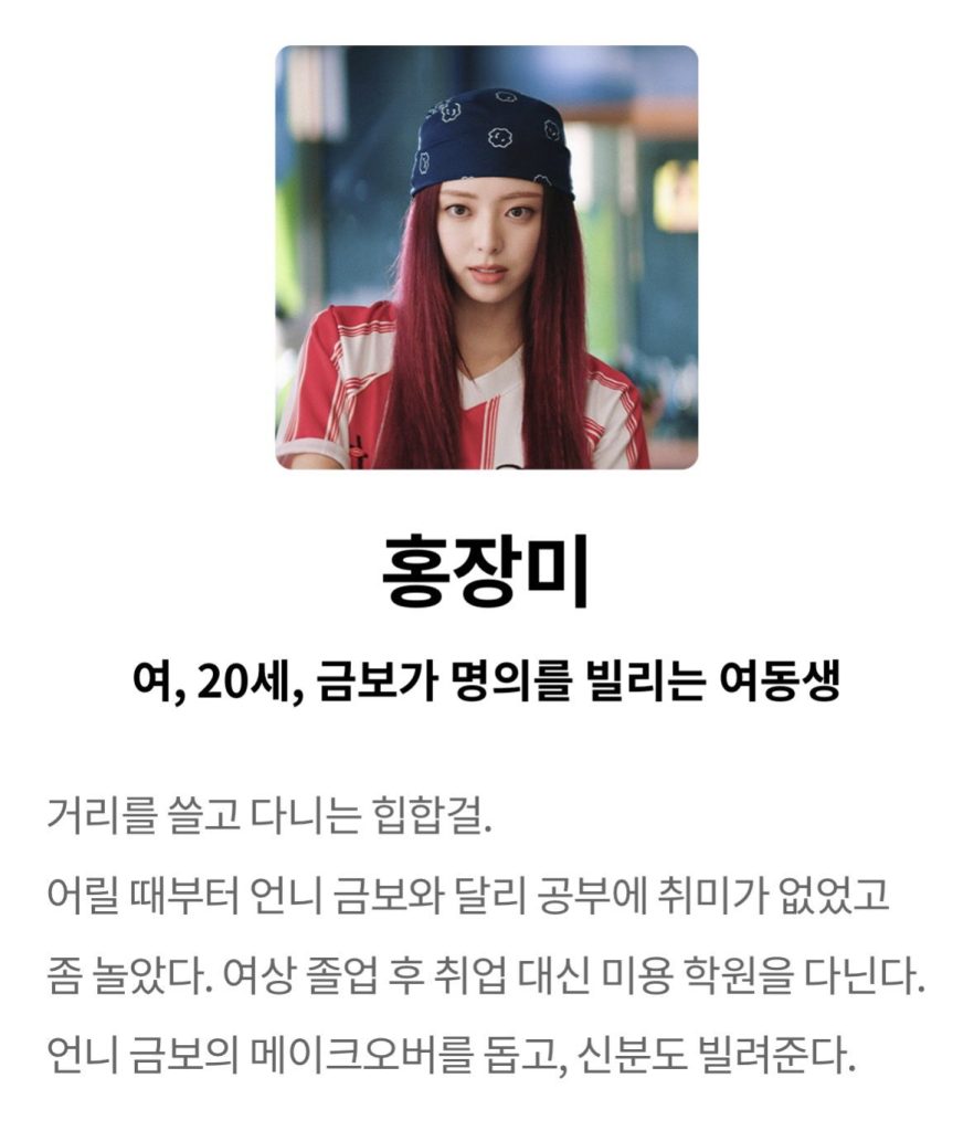 Dalam drama ini, Yuna berperan sebagai Hong Jang Mi, karakter berjiwa bebas yang tampil mencolok dengan rambut merah, celana jeans longgar, dan gaya khas era 1990-an. Penampilannya langsung menarik perhatian berkat chemistry alami dan aura segar yang ia tampilkan di teaser.